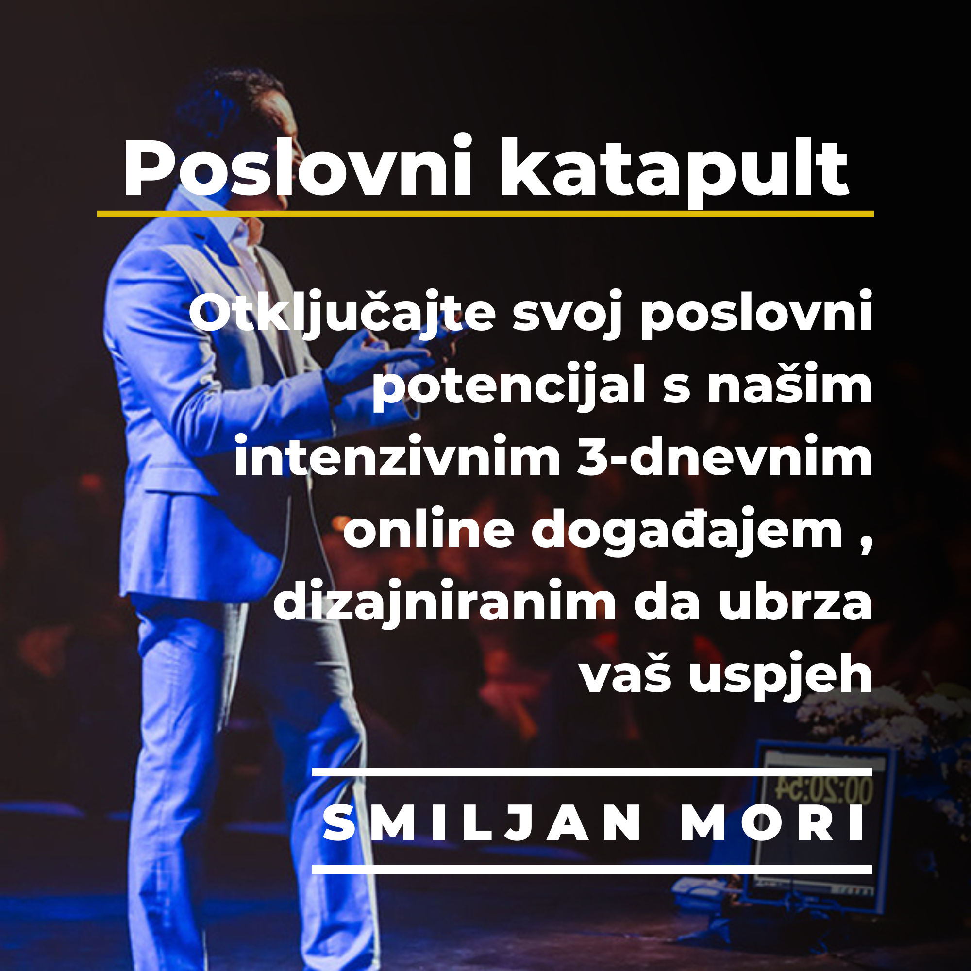 Smiljan će vas provesti kroz kompleksan program koji obuhvaća sve od postavljanja očekivanja i razvijanja prave mindset, do marketinga, prodaje, mreženja i implementacije. Na kraju događaja, imat ćete jasan plan akcije i samopouzdanje da ga izvedete.